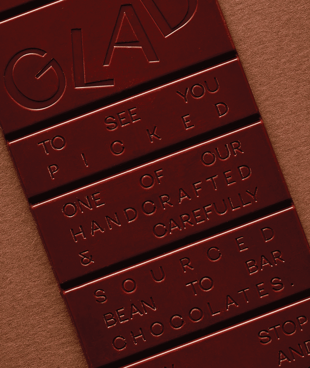 GLAD Chocolate embraces a philosophy of simplicity and transparency. Their chocolate is crafted from the finest cacao beans, consciously sourced to ensure quality and sustainability. With no additives or artificial flavours, GLAD prioritises the essence of pure chocolate. Each bar represents a lifestyle of conscious consumption, highlighting the importance of quality ingredients and responsible production. By providing clear information on their packaging, GLAD invites consumers to be part of their journey towards ethical chocolate enjoyment.