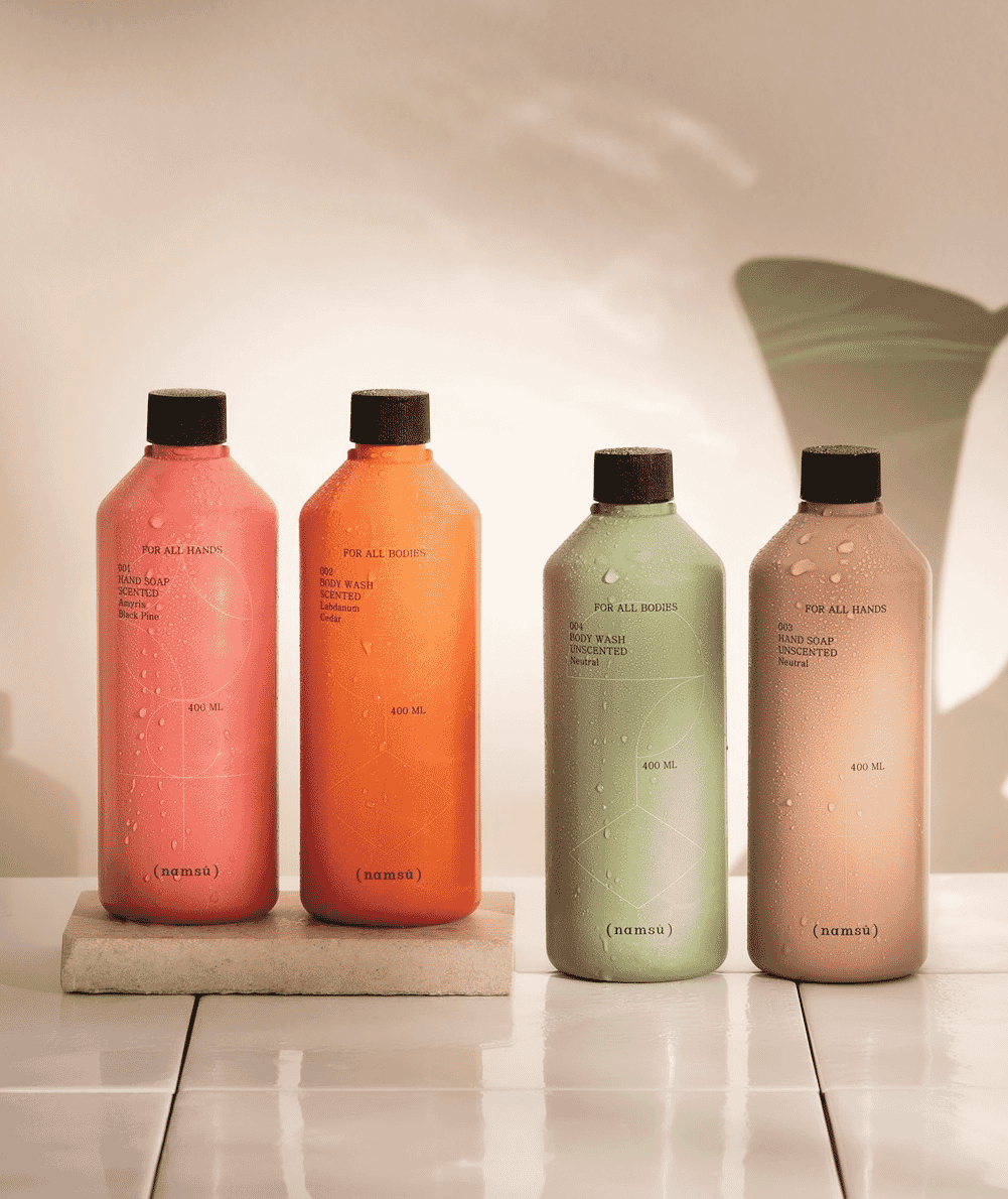 Namsu offers effective and luxurious hand and body washes with a refill and recycle system, reducing plastic waste. Their gentle formulations are environmentally friendly, catering to eco-conscious consumers. Namsu eliminates single-use plastics, uses recyclable materials, and aims to be carbon positive by offsetting more greenhouse gases than they emit, demonstrating a strong commitment to sustainability.